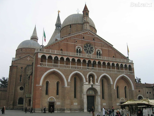 Sua Basílica é o principal monumento de Pádua e uma das principais obras-primas de arte do mundo. Foi iniciada em 1232, possui 115 de metros de comprimento, 38 metros de altura chegando a 68 com a torres, é rodeada por 8 cúpulas e o seu interior é construído em forma de cruz latina.